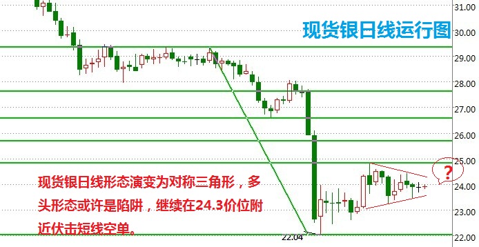 ![]() 今日策略:持續窄幅震蕩走勢,主力資金試圖隱藏自己的行蹤,而市場表現出來的多頭形態有可能是一個陷阱,目前我們判斷主力資金的意圖,所以這個時候不可以輕易入場操作,我們建議投資者依然在24.3價位附近伏擊空單,快進快出絕不戀戰! 基本面情況: 德國工業生產意外上漲,打壓美元 德國公布,3月工業生產較前月上升1.2%,2月修正為上升0.6。路透調查預估德國3月工業生產較前月下滑0.1%。 數據令歐元區短期內降息的預期降溫。美元兌歐元大跌,提振貴金屬和工業金屬。 ETF持金量降至2009年初以來最低 SPDR Gold Trust 黃金持倉量減少0.42%,至2009年初以來最低的1,057.79噸,黃金價格周三大漲逾1%,三個交易日內首次收高,因美元下滑以及強勁的實貨黃金買盤扶助抵消黃金支持上市交易基金(ETF)持金量持續下滑的影響。 技術面理由: ![]() 備注:小心多頭陷阱,繼續在24.3價位打伏擊,注意不做死空頭,該止損時不能含糊! 中線策略: 4月15日判,現貨白銀徹底失守26美元關鍵支撐,強勁的拋壓引發市場的恐慌性拋售,多頭情緒遭到嚴重的破壞,修復則需要相當長的一段時間,預計在短時間內銀價依然會依照慣性保持下跌走勢,當然盤中可能會存在反彈走勢,但是反彈的力度有限,對于中線投資者來講,我們認為現在依然不是布局中線多單的最好時機,投資者需要進一步耐心等待市場企穩以及空頭走勢反轉信號的出現! 第一紙白銀分析網(www.zjtuoke.com)北京時間10:39監測數據,工行紙白銀價格4.73元/克。 本文作者昨日白銀價格分析請看:5月8日白銀自助交易系統分析建議