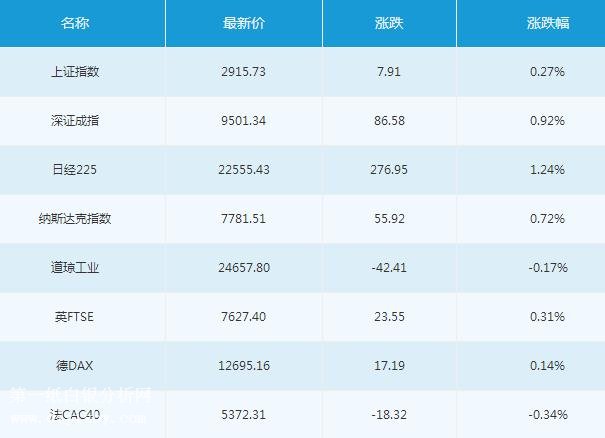 道瓊斯指數周三收盤下跌42.41點,跌幅0.17%,報24657.80點;標普500指數周三收盤上漲4.74點,漲幅0.17%,報2767.32點;納斯達克指數周三收盤上漲55.92點,漲幅0.72%,報7781.51點。