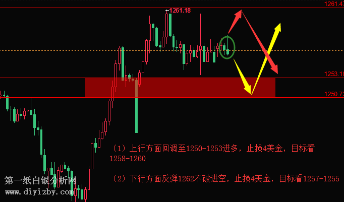 (1)上行方面回調至1250-1253進多,止損4美金,目標看1258-1260