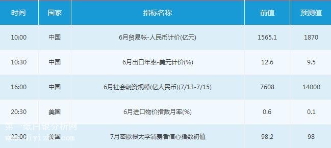周五(7月13日)亞歐時(shí)段,投資者需關(guān)注10:00公布的中國(guó)6月貿(mào)易帳-人民幣計(jì)價(jià),10:30公布的中國(guó)6月出口年率-美元計(jì)價(jià),16:00公布的中國(guó)6月社會(huì)融資規(guī)模,20:30公布的美國(guó)6月進(jìn)口物價(jià)指數(shù)月率,22:00公布的美國(guó)7月密歇根大學(xué)消費(fèi)者信心指數(shù)初值。