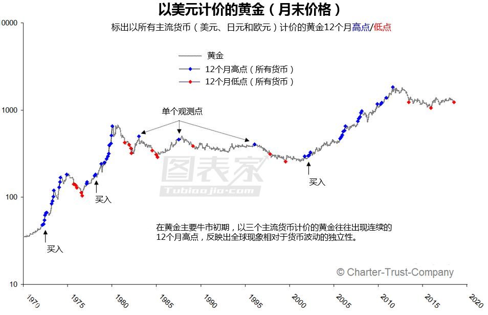 分析師MarkUngewitter認為答案在于,黃金在2011年進入熊市,且還沒有形成主要牛市。 Ungewitter指出,構(gòu)成主要牛市有三道“門檻”。 首先,黃金需要突破2016年7月高點1380.這將是2011年以來形成低點上移后的第一個高點上移。高點上移和低點上移是牛市的基本要素。市場需要在上漲前止跌。 其次,以所有主流貨幣計價的黃金都需要表現(xiàn)出長期強勁。主要牛市出現(xiàn)在以美元、歐元和日元計價的黃金形成12個月高點之后。為什么這一點極為重要?以主流貨幣計價的黃金走強證明這是一個全球范圍的牛市,而不受外匯波動的影響。 最后,黃金需要出現(xiàn)相對于標普500指數(shù)的長期強勢。當黃金的表現(xiàn)好于股票時,黃金進入主要牛市。Ungewitter認為,當黃金被視為信貸機構(gòu)的信心指標時,這一信號是有效的。 查看更多紙白銀相關新聞請看:紙白銀行情新聞