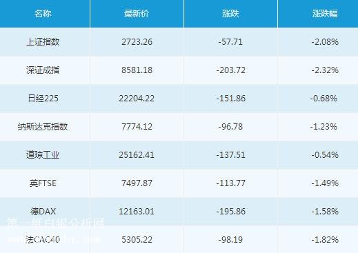 周三因騰訊財報不及預期拖累科技股市場情緒,基本金屬原油價格全線重挫,美三大股指普跌。標普500指數(shù)下跌21.59點,跌0.76%,報2818.37點。道瓊斯工業(yè)平均指數(shù)下跌96.80點,跌1.23%,報7774.12點。納斯達克綜合指數(shù)下跌137.50點,跌0.54%,報25162.41點。