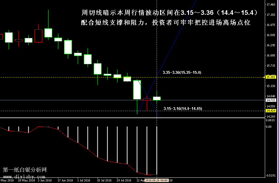今日下方關(guān)鍵支撐3.18~3.19(14.55~14.6)、3.15~3.16(14.4~14.45)、3.13(14.3);今日上方關(guān)鍵阻3.28(15)、3.35~3.36(15.35~15.4)、3.39(15.55)、3.43(15.7)。 提示:技術(shù)僅僅是基于概率論和統(tǒng)計(jì)學(xué)的一種綜合分析手段,絕非預(yù)測(cè)。所以技術(shù)分析是在考慮做好止損的情況下去博取大概率事件,投資不可過(guò)于迷信技術(shù)分析。(短線(xiàn)操作請(qǐng)一定做好止損,一旦被損,代表分析師基于概率和統(tǒng)計(jì)的技術(shù)分析不適用于當(dāng)前行情) 另外,由于紙白銀價(jià)格是國(guó)際銀價(jià)換算而來(lái),而換算過(guò)程中涉及到人民幣對(duì)美元匯率的變化,即使在國(guó)際銀價(jià)不變化的情況下,如果人民幣貶值或升值,也會(huì)導(dǎo)致紙白銀價(jià)格出現(xiàn)變動(dòng)。因此,我們的分析只采用最新的國(guó)際銀價(jià)對(duì)應(yīng)的人民幣白銀價(jià)格,如與過(guò)去分析價(jià)格有出入, 投資者應(yīng)知曉其原因。 1、文中價(jià)格為紙白銀價(jià)格,括號(hào)內(nèi)為國(guó)際銀價(jià),投資者可雙向參考。 2、以上所有價(jià)格為工商銀行買(mǎi)入價(jià),即紙白銀低價(jià)。進(jìn)倉(cāng)點(diǎn)位要再加點(diǎn)差(各銀行點(diǎn)差不一),出倉(cāng)則不要。 3、第一紙白銀給出的所有建議僅供投資者參考,不作為下單絕對(duì)依據(jù),切勿過(guò)于依賴(lài)。 4、北京時(shí)間09:00發(fā)布此文章。 5、上一交易日白銀價(jià)格分析情況:(8月28日)白銀完成止跌企穩(wěn)形態(tài) 走勢(shì)將轉(zhuǎn)入震蕩格局