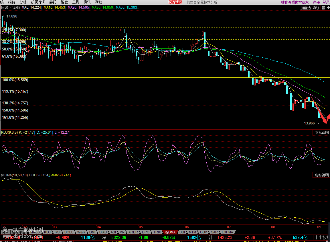 圖:白銀日K線(參考指標MACD)
