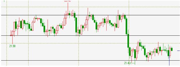 就技術面而言,白銀最近的走勢基本呈現箱體震蕩接箱體震蕩的連環套走勢,白銀在此前剛剛經歷了一個長達半個月之久的22-23橫向箱體走勢,隨著非農數據的出現該箱體告破,但隨后就馬上轉入到一個小規模的21.4——22的箱體中繼續徘徊,目前這個位置的延續時間使天,需要注意的是兩點,第一后面的箱體的震蕩區間明顯小于前面的箱體,空間為前面箱體的一半,第二后面的箱體的震蕩的最高區域也沒有向上穿越前面的額大箱體,就這兩點來看目前白銀的整理震蕩局面依舊是呈現弱勢發展的,空方對于價格的控制力依舊在體現,因此目前的額震蕩更加類似于大跌之后的低位震蕩修正過程,后市依舊呈現偏空的態勢。