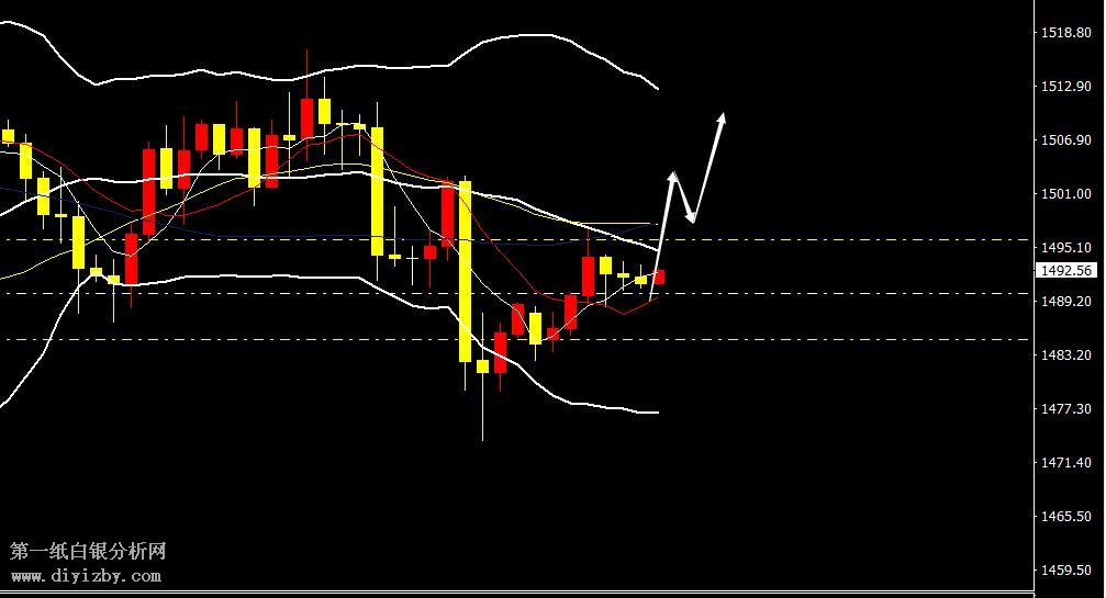 黃金1490美金做多,止損1486美金,目標1503,1510美金。