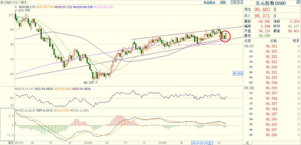 美元指數上周收一根接近光頭光腳中陽星,在通道下邊軌獲得支撐后強勢反轉,RSI指標讀數54.08,中性偏強,MACD指標綠柱縮量運行,顯示調整過程中出現反彈,總體上看下周還有一個慣性上探的過程,看能否重新確認企穩9MA均線上方,上檔壓力99/100,下檔支撐98/97