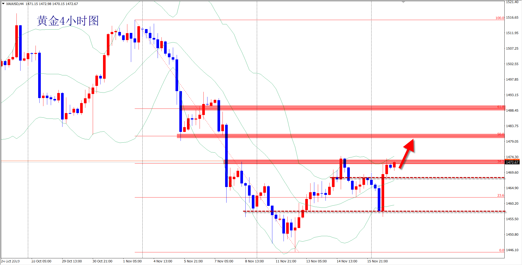 昨日先空后多,節奏完美切換,當前黃金反彈還在延續,1472現價已經進場多,早盤維持1467位置上看漲反彈,上方測試1483壓力!