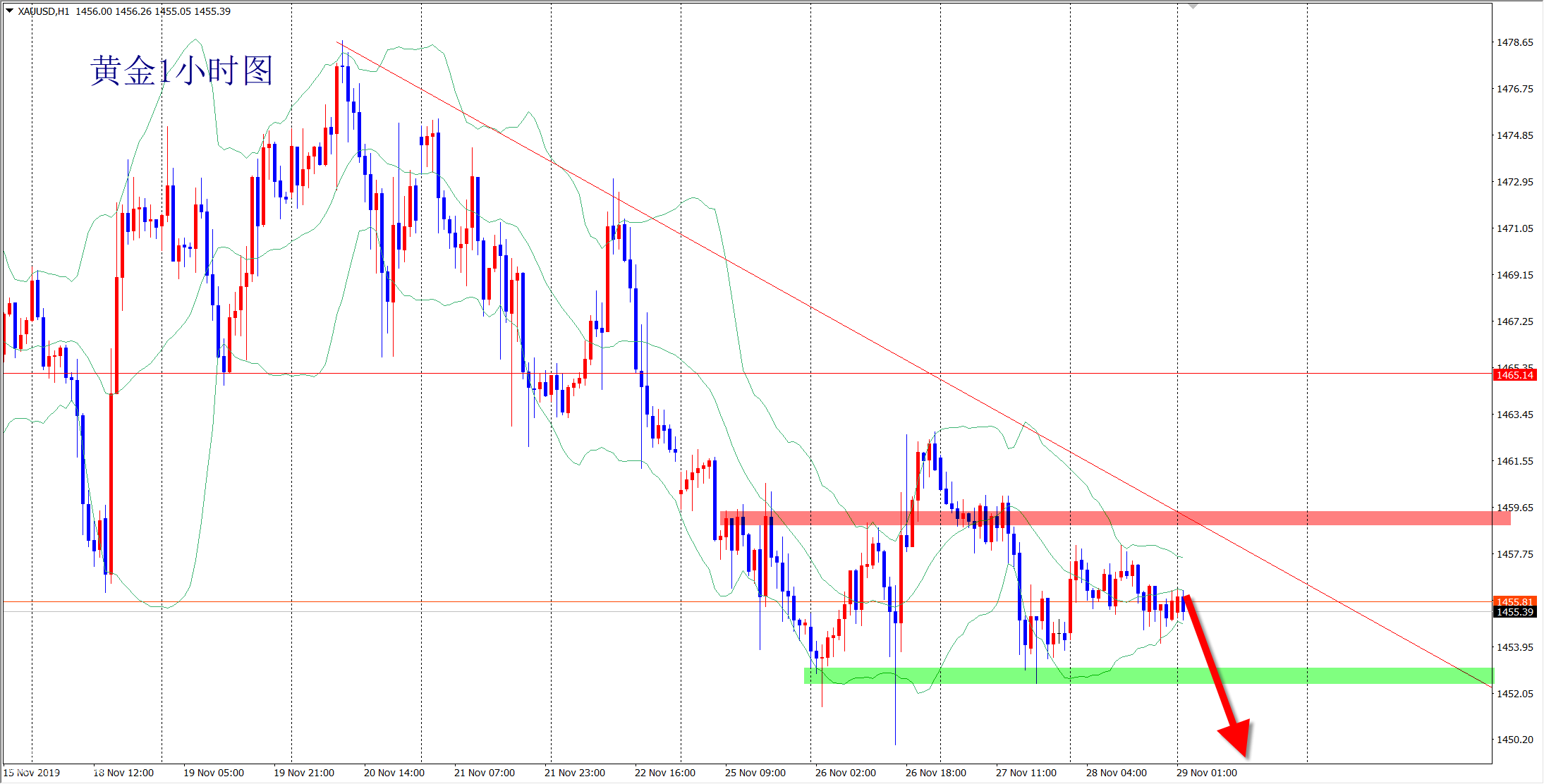 由于受到感恩節(jié)假期的影響,美盤提前休市,導(dǎo)致黃金維持窄幅震蕩,一直處于4小時(shí)布林中軌下方運(yùn)行,弱勢(shì)整理,還有一跌,日內(nèi)繼續(xù)位置1460位置下看跌!