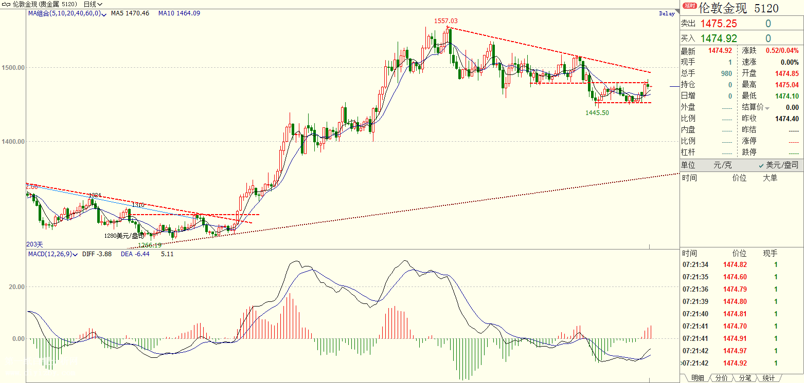同時,下行繼續關注1470美元/盎司的支撐,在跌破1470美元/盎司之前,短線做多也可考慮。如果日內金價再次跌破1470美元/盎司,則意味著黃金重新回歸空頭行情。
