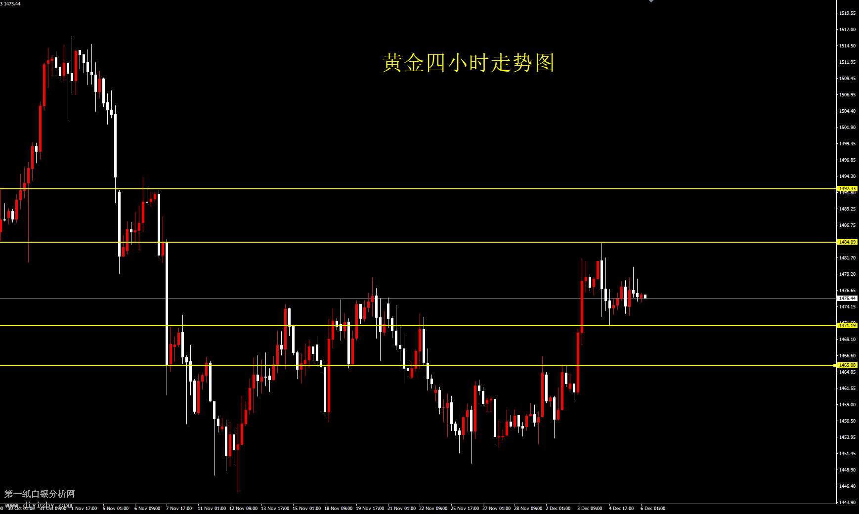 我們昨天晚上講課中分析到,價格需要在1471和1483高低點的破位上給到下一步結構模式的指引,昨天的走勢顯然還沒有給到我們答案。不過好在日線低點抬高的特點沒有被破壞,加上日線以小陽線報收,雖然屬于線內運動,但還是對多頭有一定作用。以目前黃金盤中圖表走勢,一小時均線組已經成多頭排列,四小時K線站在中長期均線上方,但未出現金叉。點位上本周價格上破關鍵阻力位1480。以1445低點反彈至1478后回調到1450.然后再次拉升,日線呈現K線低點抬高的屬性特點,四小時則有環浪推動的特點。今晚九點半公布美國11月季調后非農就業人口,這次市場給到的預測值是18萬,而前值是12.5萬,利用數據和技術的結合來跟蹤行情的后期走勢。