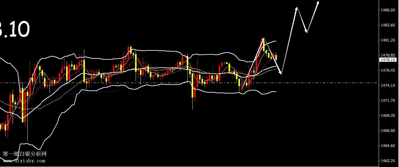 黃金H1走勢圖分析,小時圖布林帶整體依然平行發(fā)散運行,黃金本周連續(xù)四天做區(qū)間震蕩修正,整體運行區(qū)間比較小。黃金從趨勢方向上分析,繼續(xù)看震蕩反彈,短期的震蕩調(diào)整是為了后期的突破拉升蓄勢,現(xiàn)在就是考驗大家的耐心的時刻。黃金只要持有多單,后期二三十點利潤會有的。黃金今日下方關(guān)注1475美金支撐,上方壓力關(guān)注1486 1490美金,整體思路繼續(xù)做多看漲。