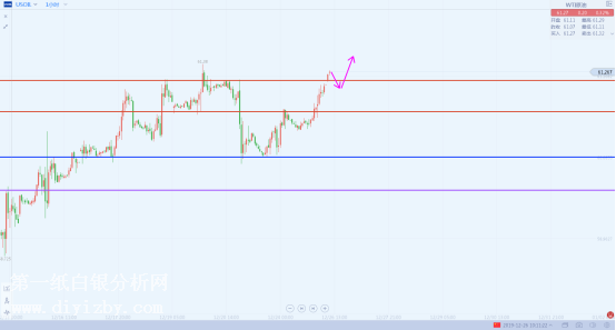 原油如圖,原油漲黃金漲,本就沒有對沖邏輯,只是恰好資金盤湊巧,圣誕一過,原油黃金同漲,再次站上61沒有太多糾結,但是原油之前下探60的動作較大,直接上破也有難度,前期高點61.4關注一下,謹防在此遇阻走大區間震蕩。操作上,日內回撤61多一次,損在60.5,目標看向61.7即可。