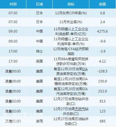 Tempus Inc負責交易的副總裁John Doyle稱,今日市場出現溫和的風險意愿,因特朗普稱貿易協議‘已敲定’。因對美中貿易緊張關系緩和的樂觀情緒削弱對避險貨幣的需求,節日期間交投清淡限制外匯市場出現大的行情。另外日本經濟數據低迷,令作為避險貨幣的日元承壓。根據官方發布的數據,日本11月營建訂單年率下跌1.2%,11月新屋開工年率下跌12.7%。日本央行行長黑田東彥表示,盡管對全球經濟前景更有信心,但如果2%通脹目標的勢頭受到威脅,央行會毫不猶豫進一步實施寬松政策。