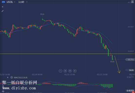 如圖,油價繼續和預期的一樣,延續了下跌,刷新了55.6的低點,目前油價還有下行的空間,今天早上開盤之后就直接下跌,關注的位置還是在圖中黃線的的位置,依托著早間的高點位置,繼續向下形成破位,將有望刷新新的低點位置,目前沒有突破黃線之前,暫時不考慮原油的多單,仍然保持著順勢而為,油價的下跌是單邊,不像黃金是個震蕩,這兩者之間有質的區別。