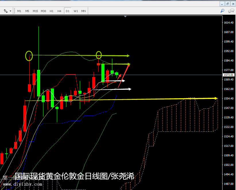 晚盤美盤時段,振幅加大,金價又短線急跌逾7美元,刷新日低至1572.16美元/盎司,隨后多頭很快入場,推動金價短線拉升逾13美元,并刷新日高至1585.70美元/盎司,之后自高位上演高臺跳水,終收跌于1574.29美元/盎司。