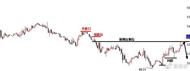 而前期高點51.90一線是關鍵阻力位,今日早間再度續漲,破高點,形成早間上升。那么日線是否具備見底的條件?