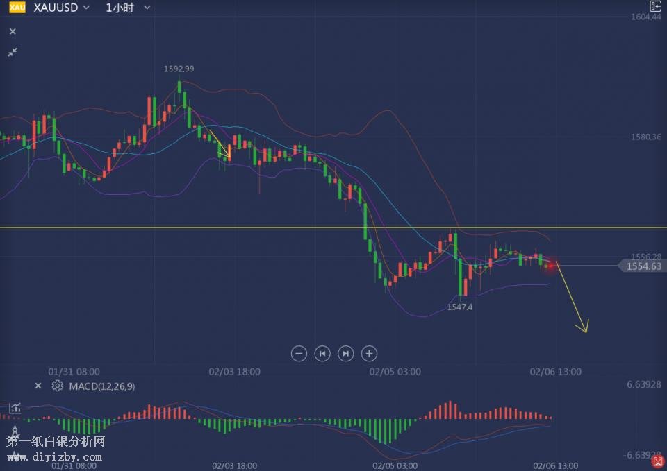 另外,晚間將公布美國至2月1日當周初請失業金人數,前值21.6萬,市場預期21.5萬,市場預期是利多,失業人數如若預期下調,在一定程度上會推動金價挑戰1562的壓力位置,反而亦然。