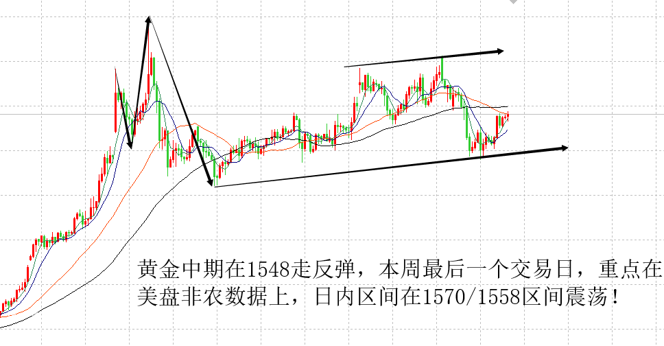 在連續(xù)三個(gè)交易日的大跌走勢(shì)中,周四走出了一個(gè)交易日的反彈,從1548開(kāi)始計(jì)算,最高反彈1568,有20美金空間,反彈需求也相對(duì)較為旺盛,買(mǎi)盤(pán)暫時(shí)還是不輕易方向多頭,這個(gè)也能理解,畢竟前期黃金的強(qiáng)勢(shì)不是幾十美金的空間,周四跟空止損。本周走到目前為止,很明顯重點(diǎn)關(guān)注非農(nóng)數(shù)據(jù),本次非農(nóng)數(shù)據(jù)較為重要,既是良好的機(jī)會(huì),也是契機(jī),本次非農(nóng)數(shù)據(jù)可能加速黃金2月看空的進(jìn)度,改變主力對(duì)黃金多頭的信心。從目前看來(lái),黃金日線三連陽(yáng)狀態(tài),短期內(nèi)有強(qiáng)勢(shì),日線收口前期講過(guò)看支撐在1542附近,既然低點(diǎn)給出了1548,那么空頭暫時(shí)的支撐點(diǎn)給在1548,非農(nóng)利空看跌也關(guān)注1548點(diǎn)位,H4周期收口,高點(diǎn)關(guān)注1578點(diǎn)位,不會(huì)走出過(guò)分強(qiáng)勢(shì)點(diǎn),因此,山海看非農(nóng)預(yù)計(jì)在1578/1548區(qū)間內(nèi)。對(duì)比本次非農(nóng)數(shù)據(jù)來(lái)看,前置是14.5w,市場(chǎng)預(yù)測(cè)是16w,根據(jù)周三ADP公布的數(shù)據(jù)對(duì)比,本次實(shí)際數(shù)據(jù)預(yù)計(jì)和市場(chǎng)預(yù)測(cè)接近,將表明經(jīng)濟(jì)有較好的表現(xiàn),利空黃金,下跌的具體點(diǎn)位關(guān)注1558/1548。交易上,亞歐盤(pán)預(yù)計(jì)在1570/1558區(qū)間震蕩,早間1570之下可以交易短空,如果亞歐盤(pán)慢跌到1558,那么美盤(pán)看非農(nóng)數(shù)據(jù),關(guān)注1568/1548區(qū)間,如果亞歐盤(pán)維持在1568附近,那么美盤(pán)關(guān)注1578/1548區(qū)間。另外,長(zhǎng)線思路再次強(qiáng)調(diào)黃金空頭2月放量至1500之下不變!
