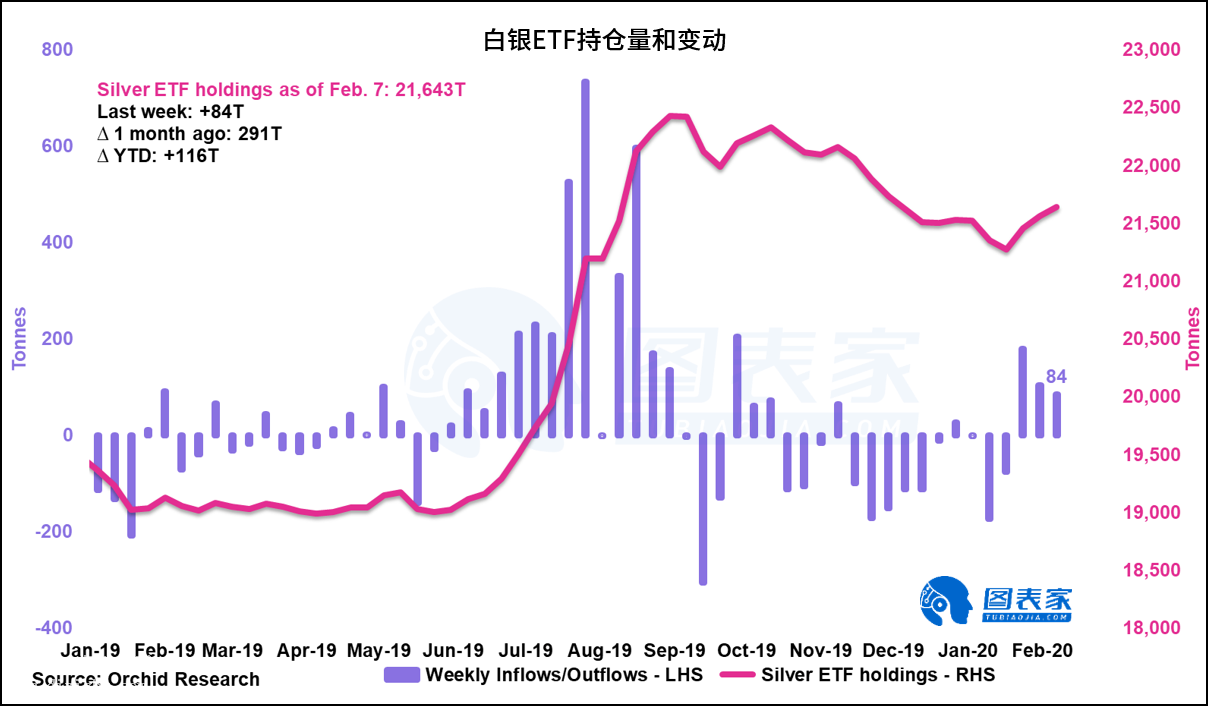 在截至2月7日的一周內,ETF投資者買入84噸白銀,標志著連續第三周資金流入。