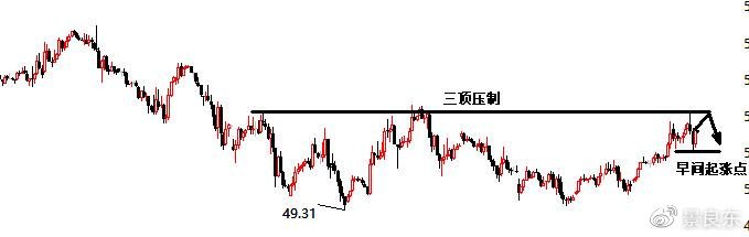上方三頂阻力52-52.10觸及空,損52.6,目標(biāo)51.20-30一線。