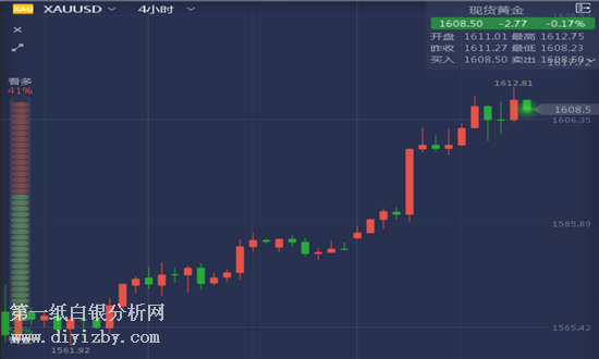 技術(shù)面,雖然周三出現(xiàn)小幅回調(diào),但金價(jià)暫時(shí)依舊維持在1600美元上方,金價(jià)需要突破看漲通道阻力,以確認(rèn)在日內(nèi)以及短期內(nèi)繼續(xù)上漲,我們的下一主要目標(biāo)位于1612美元/盎司,突破這一水平是金價(jià)漲向下一目標(biāo)1625.00美元/盎司的關(guān)鍵因素。指標(biāo)繼續(xù)支持看漲預(yù)期。需要指出的是,假如金價(jià)跌破1575.90美元/盎司,這將令金價(jià)止住預(yù)期中的升勢(shì),并推動(dòng)金價(jià)再次回到看空軌道。