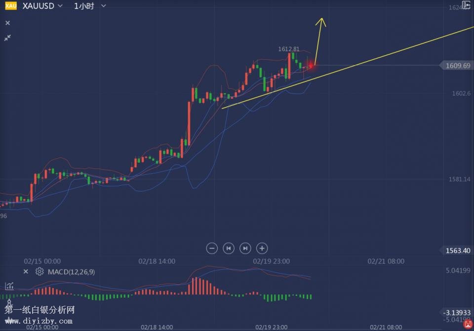 周三,美盤時段受消息面的利空影響,金價并沒有出現大幅的上升,但利空消息對市場的刺激也非常有限,只是小幅回撤,再次靠近1605附近的支撐點位置,二次拉升至1613,并且成功突破了之前的高點位置。
