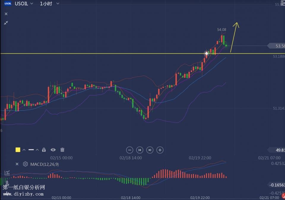 原油,經過一輪整理之后,刷新了54.00的高點,而昨晚直播照樣給出了52.5-52.6的多,非常完美的抵達目標位置53.5的上方成功止盈,油價持續(xù)性的上漲,也同樣有人測試空,在直播間不少朋友講到油價要回調,而我卻堅持了布局多單,目前沖高回落之后的關鍵所在是在跳空的位置以及1小時中軌附近53.3,這也將成為今天入場多的關鍵位置。
