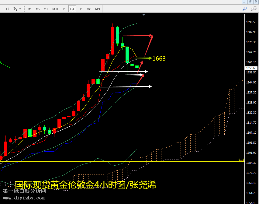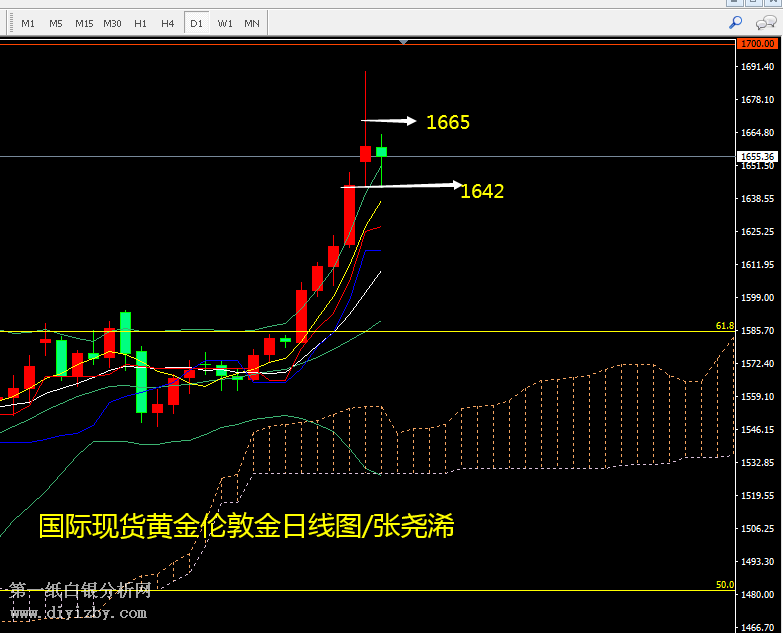 周線級別;上周金價收取一根大長陽柱,并走于布林帶上軌上方,看漲云帶向上擴散,指標上,MACD金叉保持向上,紅色動能柱連續升起,RSI及KDJ金叉向上,暗示后市仍偏上行,本周在延續走高后,目前有所回撤,本周重點關注收線是否在1665下方,以此來判斷是否還有新高。故此上方先關注1665初步阻力,進一步關注1675及1680美元阻力。整體上后市有偏向高位區間震蕩的趨勢。交易記得及時鎖定利潤。