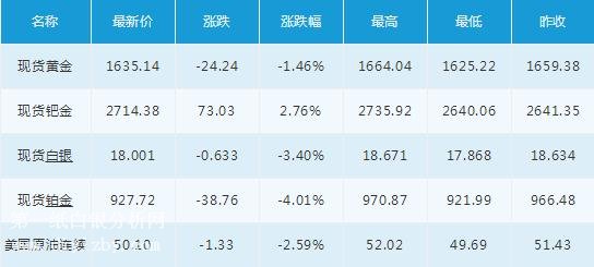 其它貨幣對方面,美元兌瑞郎0.31%至0.9761;美元兌加元跌0.11%至1.3279;澳元兌美元跌0.02%至0.6604;紐元兌美元0.30%至0.6321。