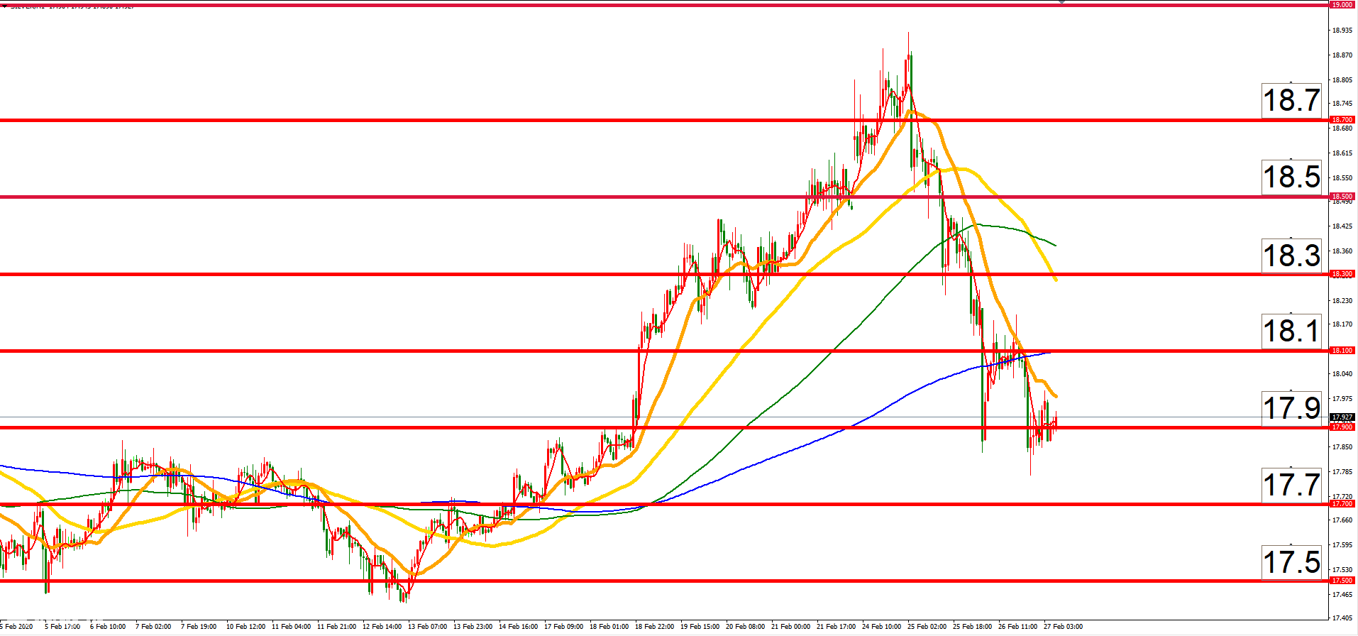 下方支撐 : 17.9、17.7、17.5 美元/盎司