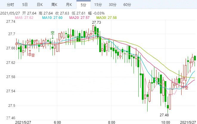 昨日現貨白銀市場早盤開盤報27.972,隨后上漲至28.229,隨后回落。最低價是27.587,然后整理市場。日線最終收于27.661點,隨后市場以一條比影子線長的影子線收盤。這種情況結束后,今天的市場很高。