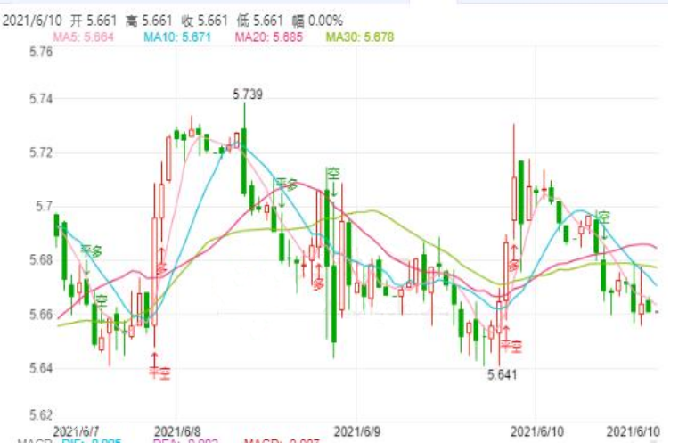 周六(6月12日)工行紙白銀走勢呈下跌,今日開盤報5.706元/克,最高觸及5.714元/克,最低觸及5.656元/克。