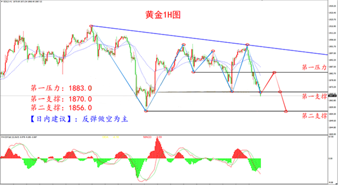 空單:1883.0附近嘗試做空,止損1888.0,目標(biāo)1870.0、1856.0附近。