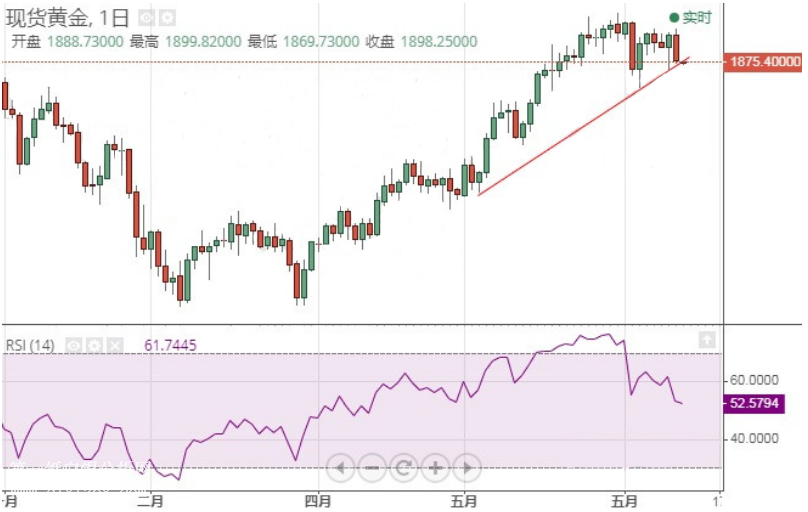 Sengezer補(bǔ)充道,上行方面,堅(jiān)固阻力似乎已經(jīng)在1900美元/盎司心理水平形成,假如多頭能夠推動(dòng)金價(jià)突破這一水平,則金價(jià)下一目標(biāo)預(yù)計(jì)在1916美元/盎司(6月1日高點(diǎn))。