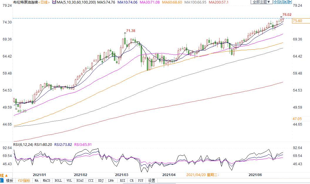 周一(6月28日),中國石油上漲0.25美元,收于每桶73.33美元,漲幅0.34%。德國的零售額創下30多年來的最高增幅,提高了人們對歐洲燃料需求將復蘇的預期。同時,早前的EIA報告顯示,美國原油庫存減少760萬桶,遠高于市場預期的390萬桶,這再次印證了市場需求的旺盛。