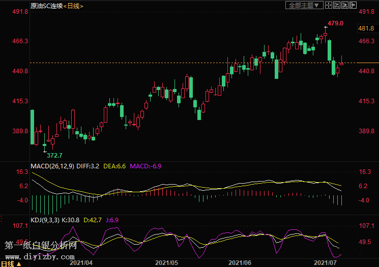 上海原油價格周一(7月12日)上漲,主力合約2108收于448.6元/桶,上漲7.4元/桶,漲幅1.68%。市場對美國石油庫存下降作出反應,中國和印度也有強勁的亞洲需求跡象,這也帶來了支撐。