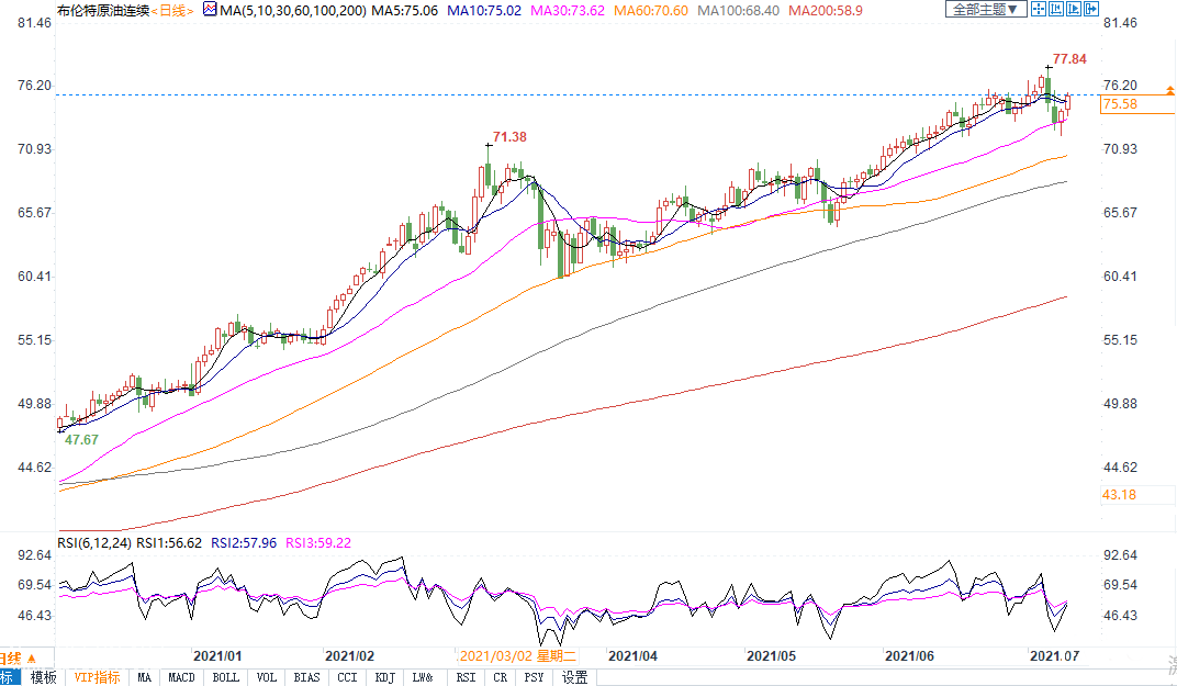 周二(7月12日),美國石油期貨價格上漲1.62美元,收于74.56美元,漲幅2.22%;Bu石油期貨上漲1.43美元,漲幅1.93%,收于每桶75.55美元,兩個合約連續(xù)第二天上漲。隨著夏季駕車高峰的臨近,上周美國原油和汽油庫存大幅下降,亞洲有跡象顯示中國和印度需求強勁,支撐油價。本周早些時候,由于歐佩克+聯(lián)盟在生產(chǎn)政策上停滯不前,導致市場連日動蕩,油價自5月份以來首次出現(xiàn)單周下跌。