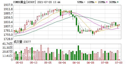昨日,金價呈現探底狀態。當日,金價最高報1817.23點,金價最低跌至1794.92點,收于1812.62點。