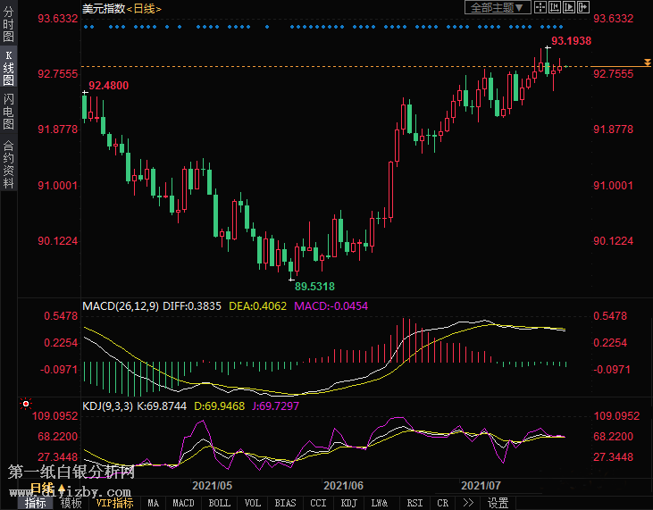 上周五美元小幅上漲,連續(xù)第二周上漲。它在過去幾天經(jīng)歷了風(fēng)險(xiǎn)偏好變化引起的波動(dòng)。現(xiàn)在市場(chǎng)的焦點(diǎn)是本周的美聯(lián)儲(chǔ)會(huì)議。不過,一些分析師懷疑美元近期的上漲是否正在失去動(dòng)力。美元已從上周三創(chuàng)下的93.19美元的三個(gè)半月高點(diǎn)脫離。在華爾街強(qiáng)勁的企業(yè)盈利幫助投資者恢復(fù)了一些信心之后,他們擔(dān)心delta變異病毒可能會(huì)破壞全球經(jīng)濟(jì)復(fù)蘇。上周五,風(fēng)險(xiǎn)偏好居高不下,美國(guó)股市上漲,政府債券拋售,多數(shù)大宗商品貨幣上漲,美元脫離高位。