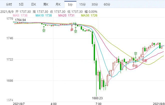 8月9日亞洲開盤之初,國際黃金價格大幅下跌,一度跌破1700點大關,創下自4月1日以來每盎司1609.03美元的新低,跌幅約為4%。開盤后不到一小時,短期金價暴跌近85美元,一度接近1680美元/盎司的水平。目前,黃金的基本面和技術面都不好,短期下行壓力將繼續保持。
