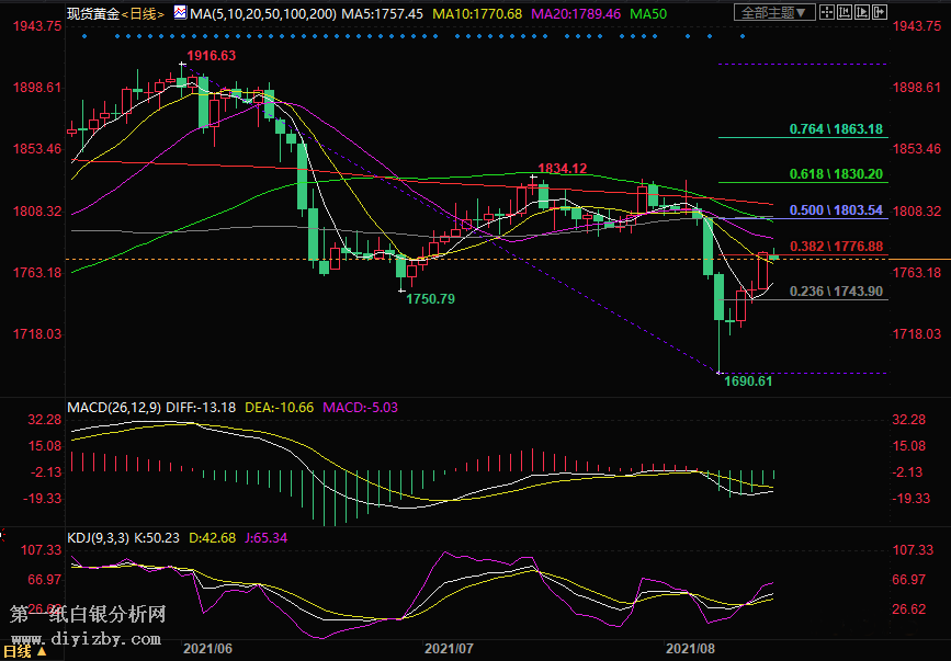 下方初步支撐關注5日均線1757.39,進一步關注23.6%回撤位1743.90以及8月11日低位1724.17。