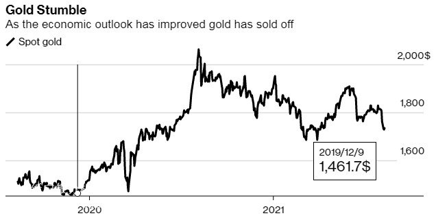 然而,市場(chǎng)也看好黃金。高盛(Goldman Sachs)分析師米哈伊爾·斯普洛伊斯(Mikhail sprogis)表示:“過去幾個(gè)月,黃金走勢(shì)與通脹擔(dān)憂密切相關(guān)。因此,美聯(lián)儲(chǔ)鷹派態(tài)度的改變?cè)l(fā)金價(jià)大幅回調(diào)。。。鑒于黃金價(jià)格被低估,投資界配置較低,一旦有跡象表明全球復(fù)蘇低于預(yù)期或通脹水平高于預(yù)期,我們認(rèn)為黃金價(jià)格將大幅上漲。因此,我們認(rèn)為黃金對(duì)于尋求對(duì)沖宏觀波動(dòng)尾部風(fēng)險(xiǎn)的投資者來說可能是一種良好的戰(zhàn)略資產(chǎn)。”