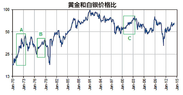 首先,白銀的表現(xiàn)往往勝過(guò)黃金——導(dǎo)致黃金與白銀價(jià)格比下降——在貴金屬上漲的中期后一階段,特別是在周期性貴金屬牛市的后期階段。之所以會(huì)出現(xiàn)這種情況,與在經(jīng)過(guò)多年上漲之后的收尾階段,高度投機(jī)性的小型黃金礦業(yè)股往往比大型、低風(fēng)險(xiǎn)的同行股票走勢(shì)強(qiáng)得多是出于同樣的原因。隨著上漲的過(guò)程進(jìn)展,投機(jī)者有膽量承擔(dān)更多的風(fēng)險(xiǎn),并進(jìn)一步向下搜索獵物。 其次,在過(guò)去50年里,有時(shí)黃金的表現(xiàn)比白銀好——導(dǎo)致黃金與白銀價(jià)格比上升——在過(guò)去每個(gè)周期性貴金屬牛市的過(guò)程里,一個(gè)長(zhǎng)期牛市的前兩年中都是如此。具體來(lái)說(shuō),1971年中一直到1973年年中,從1976年年中直到1978年年底,以及從2001年年初到2003年年中,黃金的表現(xiàn)都優(yōu)于白銀(在圖1中這三個(gè)階段分別用方框標(biāo)記為A、B及C)。 另外, 50~65現(xiàn)在看來(lái)是黃金和白銀價(jià)格比的正常范圍。比例低于50,表明白銀長(zhǎng)期來(lái)說(shuō)是處于相對(duì)黃金的“超買(mǎi)”狀態(tài)和貴金屬漲勢(shì)已進(jìn)入最后階段;,而當(dāng)比例上升到高于65時(shí),表明長(zhǎng)期來(lái)看,整個(gè)貴金屬處于“超賣(mài)”狀態(tài),而投資者至少有兩年的時(shí)間會(huì)看到白銀表現(xiàn)超過(guò)黃金。 歷史記錄表明,新周期性牛市的頭兩年中黃金跑贏白銀的事實(shí)意味著,如果一個(gè)新的周期性牛市開(kāi)始于2013年6月下旬(我們堅(jiān)信它開(kāi)始了),那么白銀相對(duì)黃金下行的傾向要保持到明年下半年。 然而,日前該比值收在其正常區(qū)間的高位,在這個(gè)水平上,長(zhǎng)期來(lái)看白銀是相對(duì)于黃金“超賣(mài)”的,大大高于它在以前周期性牛市早期階段的表現(xiàn)。這表明長(zhǎng)期投資者現(xiàn)在應(yīng)該是偏重于白銀。還值得指出的是,白銀現(xiàn)在是在短期的基礎(chǔ)上相對(duì)于黃金“超賣(mài)”,可以通過(guò)圖2白銀和黃金比率日線圖底部的相對(duì)強(qiáng)弱指數(shù)水平較低看出。 我們的結(jié)論和兩個(gè)月前所說(shuō)的是一樣的:目前我們已處在一個(gè)新的周期性貴金屬牛市的初期,目前水平的黃金與白銀價(jià)格比從長(zhǎng)期來(lái)說(shuō)是中性。也就是說(shuō),對(duì)于我們自己的賬戶,我們更感興趣的是積累銀條勝過(guò)金條,僅僅因?yàn)槲覀冇嘘P(guān)黃金的股票很多,有關(guān)白銀的股票很少。 查看更多紙白銀相關(guān)新聞?wù)埧矗?a href="http://www.zjtuoke.com/xinwenzhongxin/" target="_blank">紙白銀行情新聞